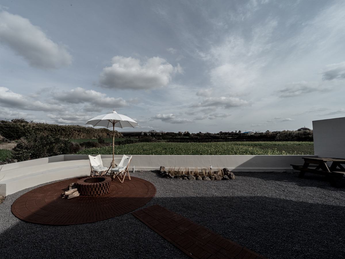 해가 뉘엿뉘엿지고 제주도푸른밤이 될 때면 조적으로 쌓아 올려둔 화단의자에 앉아 불멍을 시전한다. 감동스테이는 밤낮이 없다 뷰와 하늘이 우리에게 감동을 선사한다.