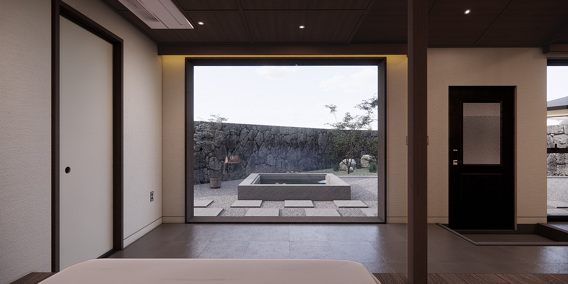 - 사계연화는 전통 한옥의 기와 지붕과 대체적인 느낌은 그대로 유지하면서도, 현대적인 디자인 감각을 추가하여 세련된 느낌을 강화시킨다. 대형 창문이나 오픈 플랜 구조를 통해 개방감을 강조하고, 내부는 심플하고 깔끔한 라인으로 정돈된 느낌을 더한다. 현대화된 한옥의 정적인 미가 돋보이는 사계연화는 자연광을 최대한 활용하도록 설계된다. 큰 유리창이나 터닝 도어를 통해 바깥의 경치를 감상할 수 있으며, 환기 또한 용이해 쾌적한 실내 환경을 제공한다. 이렇게 열린 구조는 내부 공간을 더욱 넓어 보이게 한다. 전혀 이질감 스럽지 않은 자쿠지의 재질과 돌담, 골재와 조경 등이 균형있는 멋을 유지한다.