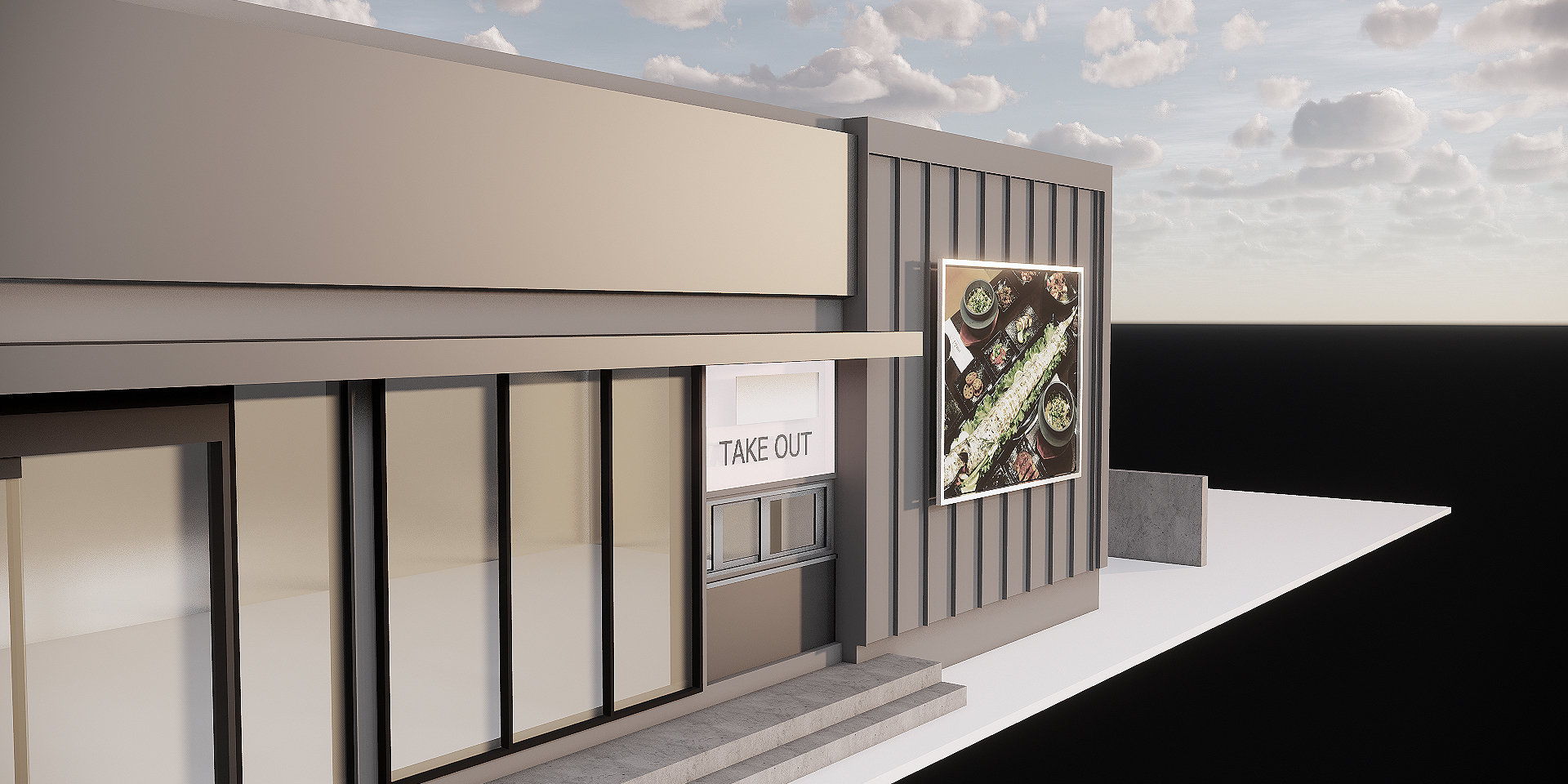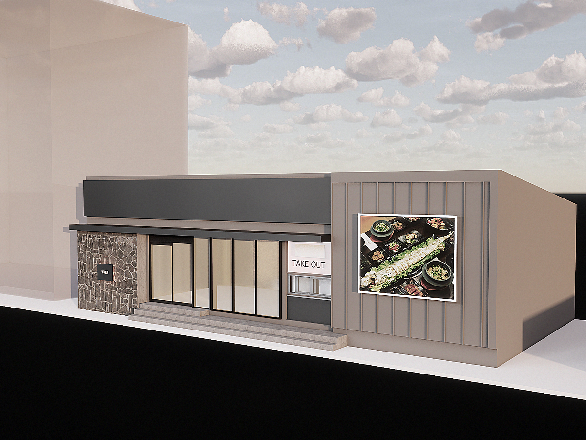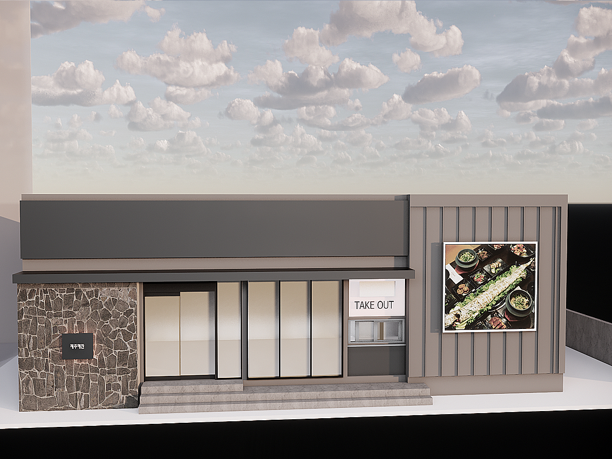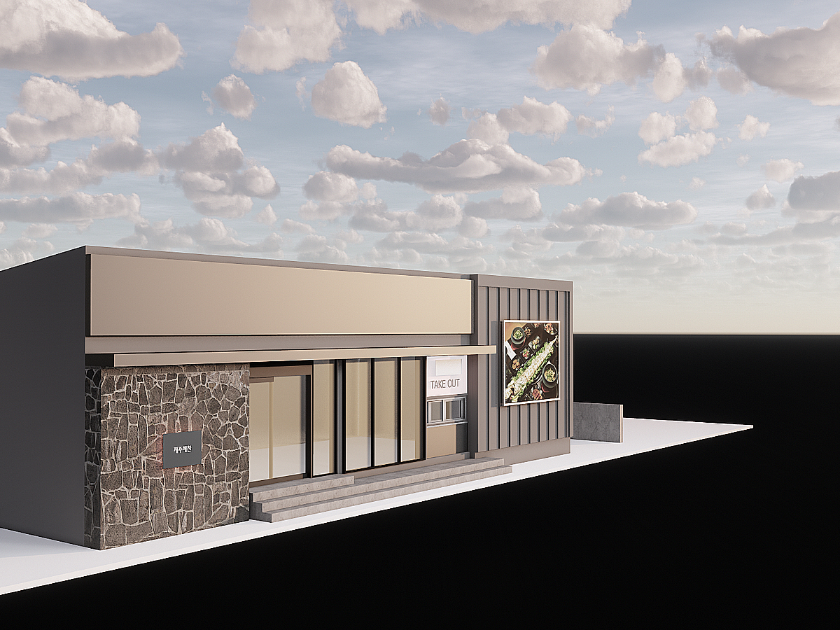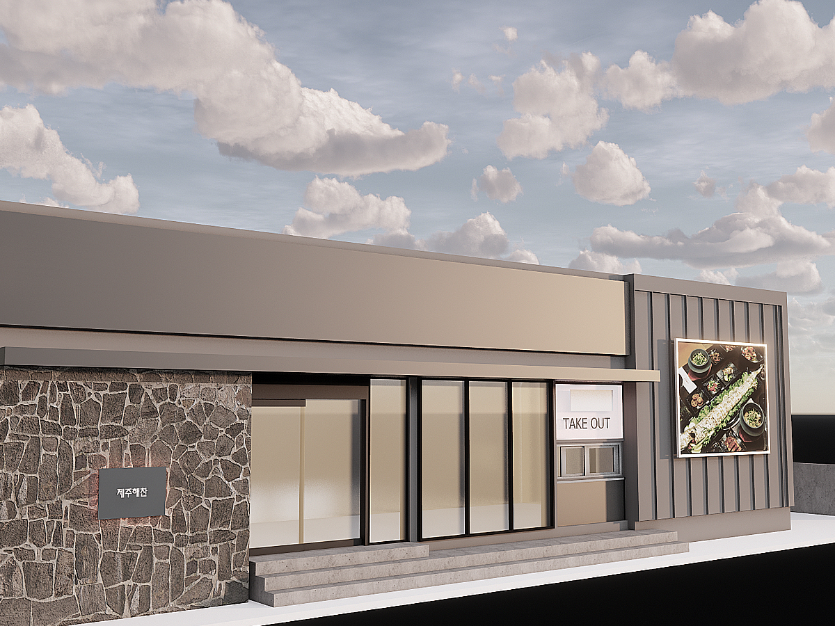 - 이 제주도 바다 바로 앞에 위치한 고기집은 외관에서부터 독특한 매력을 발산한다. 회색 강철로 둘러싸인 외관은 현대적인 느낌을 주며, 제주바다의 강한 바람과 파도의 세찬 에너지를 고스란히 받아들이는 디자인으로 돋보인다. 한쪽 면에는 제주 특유의 현무암이 부착되어 있어, 자연과 인공 구조물 간의 조화를 이룬다. 이 현무암은 제주도의 상징적인 요소를 반영하며, 고기집의 독창적인 정체성을 부각시킨다.