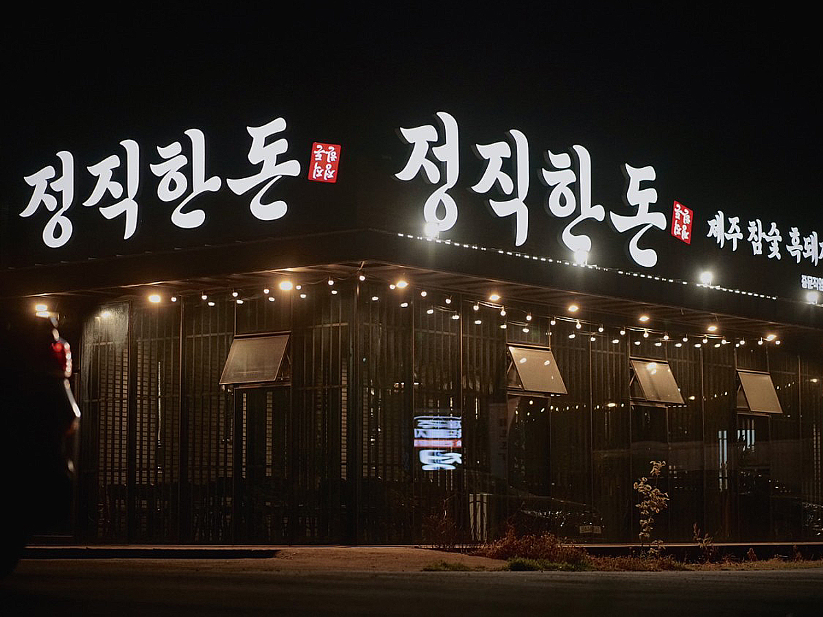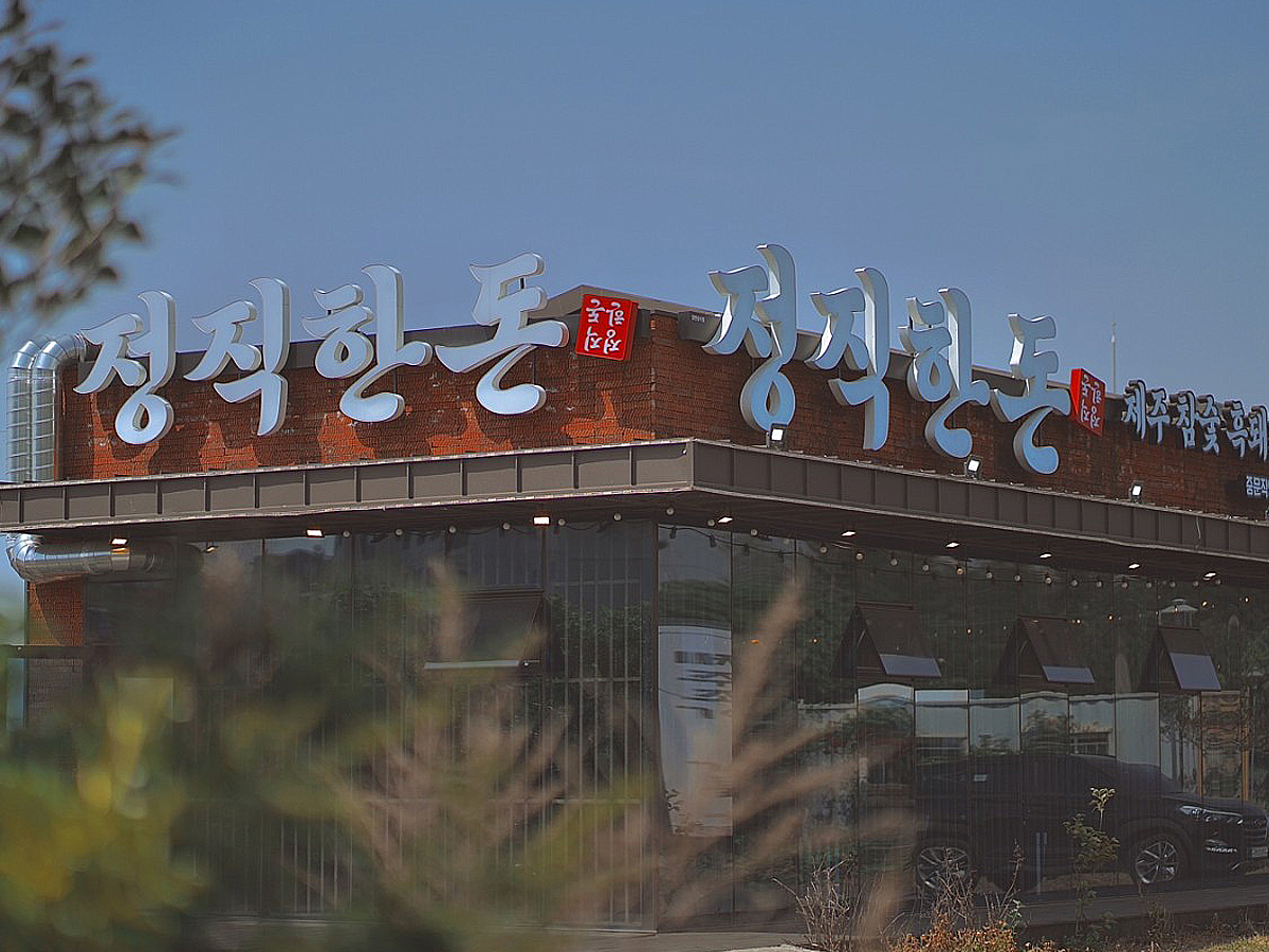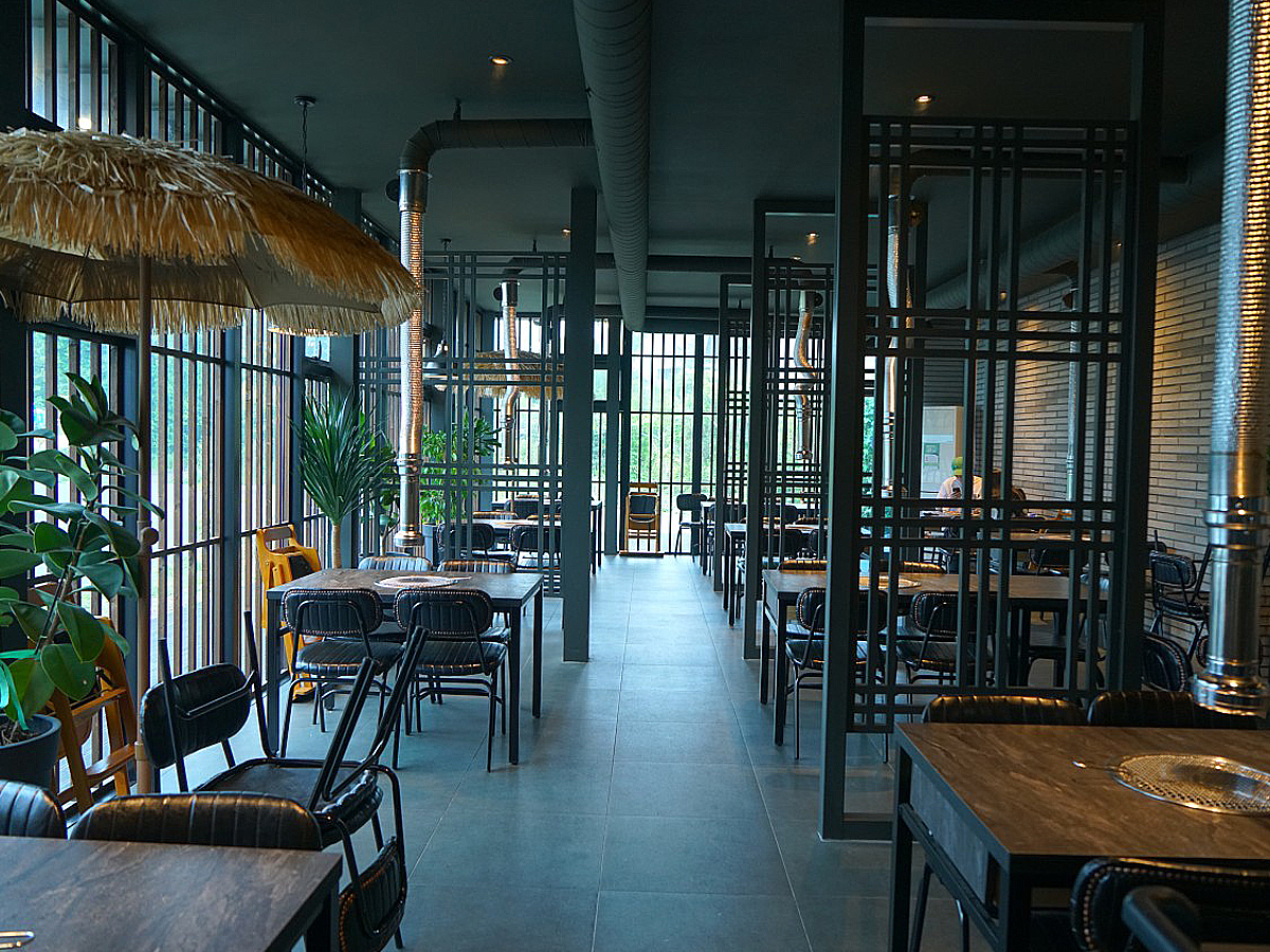 내부 공간은 검정색과 회색의 무채색 계열이 톤온톤으로 조화롭게 이루어져 있다. 바닥은 세련된 타일로 마감되어 있어 청소가 용이하며, 고기 구이와 같은 요리로 인한 오염에도 효과적으로 대응할 수 있다. 벽면은 부드러운 질감의 벽도장으로 마감되어 있으며, 전체적인 색감은 고급스러움과 안정감을 준다.