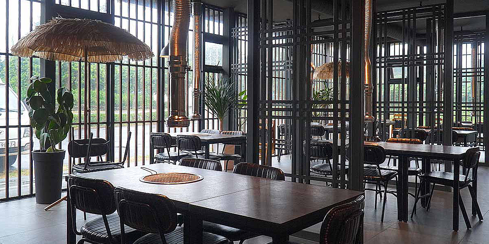 이곳의 내부는 강렬한 대조를 이루는 요소들로 구성되어 있다. 검정색 도장 강철과 벽돌 타일이 조화를 이루며, 내구성과 세련미를 동시에 제공한다. 검정색 강철은 현대적이고 산업적인 느낌을 주며, 벽돌 타일은 따뜻함과 빈티지한 매력을 더해 공간에 깊이를 부여한다.