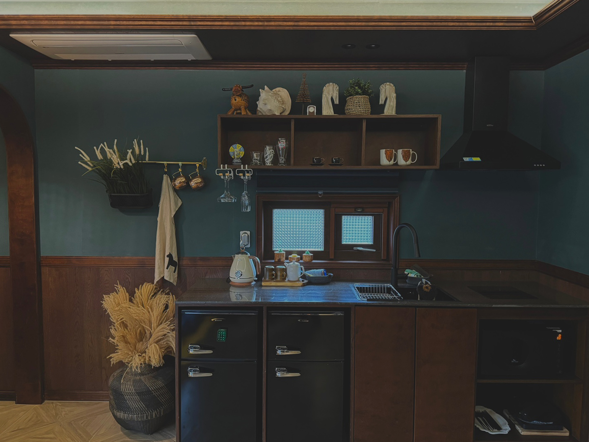 엔틱한 소품과 가구들이 섬세하게 배치되어 있어 고풍스러운 매력을 더하였다. 각종 장식들은 이곳의 역사와 문화를 느끼게 하며, 방문객들에게 특별한 경험을 선사하였다. 이 펜션은 단순한 숙소를 넘어, 제주도의 전통과 자연을 깊이 있게 체험할 수 있는 공간으로, 특별한 힐링과 안식을 제공한다.