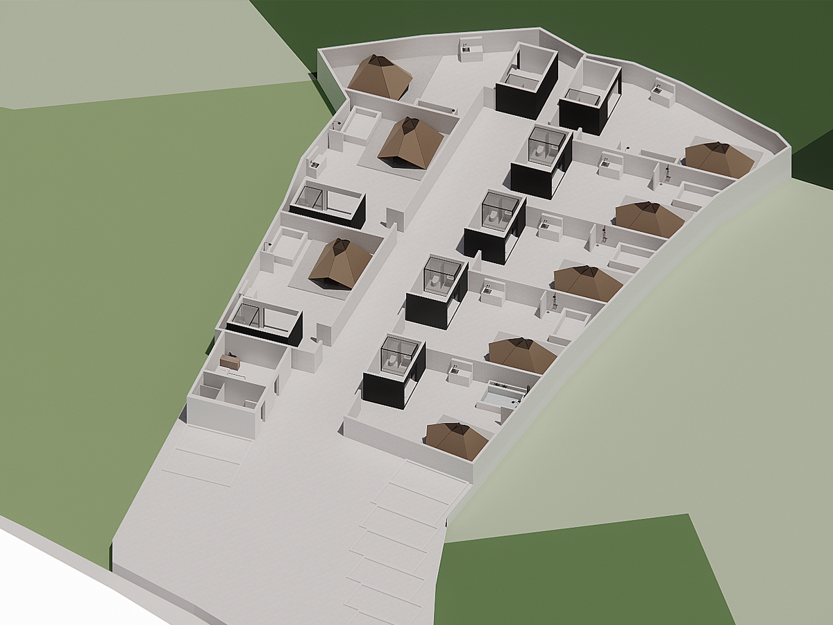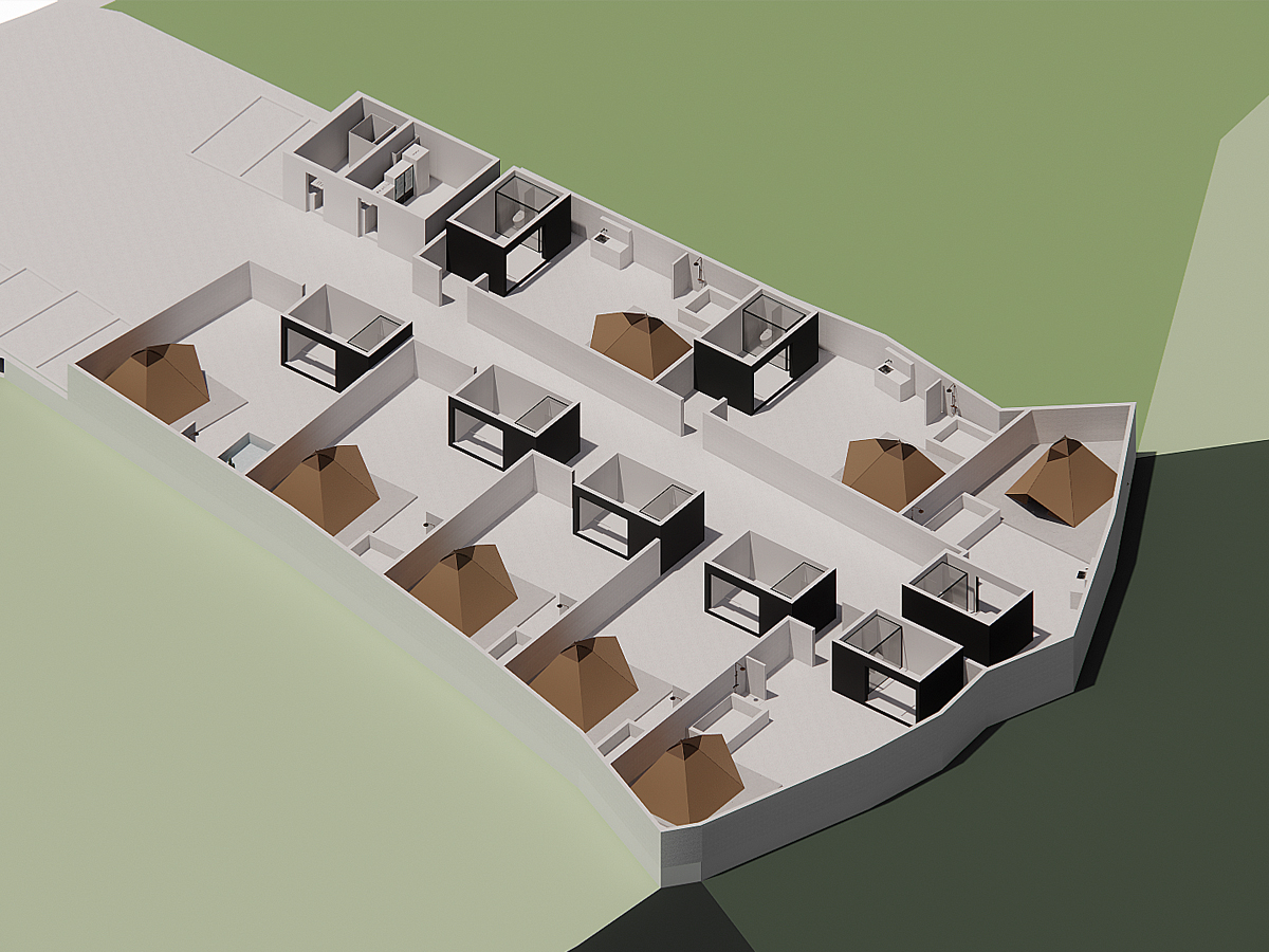 사진에서 보이는 건물은 샤워동으로 자유로이 출입이 가능하다.