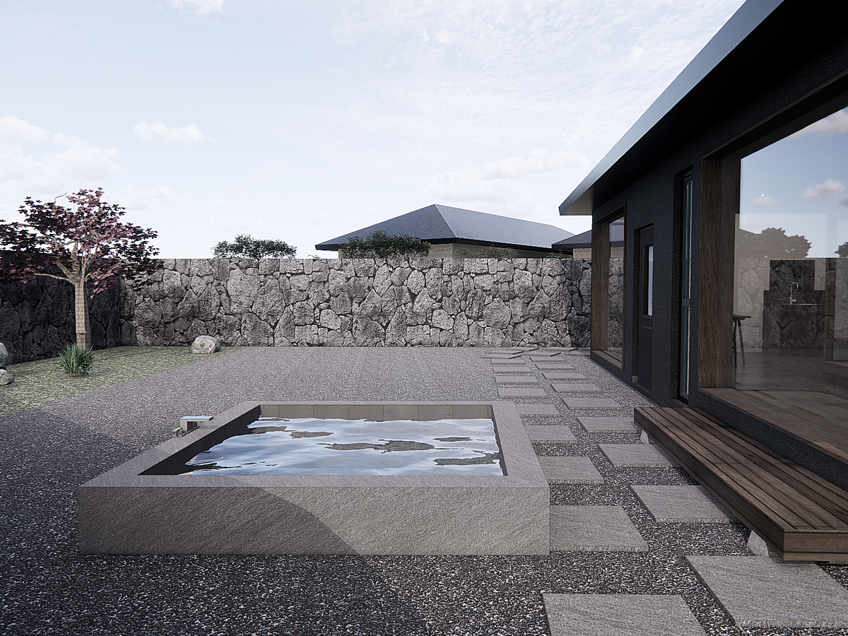 한그루의 단풍나무와 그 주위를 둘러싼 수염풀과 제주 현무암이 서정적이며 재패니즈 전통적 느낌을 강화하였다.