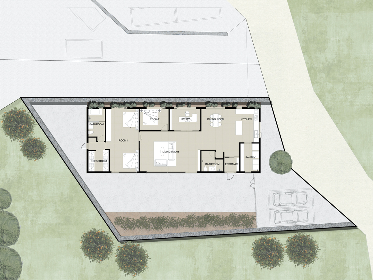 - 현대적인 미니멀리즘 디자인을 채택하여 불필요한 요소를 최소화하고, 간결하면서도 기능적인 공간을 창출한다. 외관의 전체적으로 깔끔한 마감은 공간을 더욱 넓어 보이게 하며, 혼란스럽지 않은 느낌을 준다. 외관 모양은 신중하게 선택되어 공간에 조화를 이루며, 미적인 가치도 함께 높힌다. 집의 모든 요소는 편안함을 위해 세심하게 디자인되어, 심리적으로 안락한 환경을 조성한다. 조명은 부드러운 조도를 유지하며, 가족의 일상 속에서 편안함을 느낄 수 있도록 하였다.