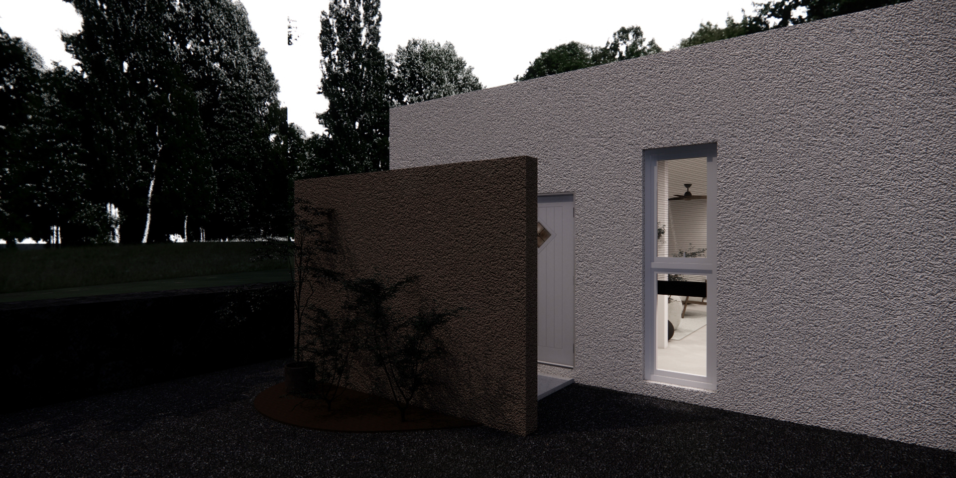 이 곳은 제주 서쪽 끝에 달하는 한경면의 조수리라는 마을에 위치한 신축 펜션 짓기로한 곳이다. 우리는 이곳을 땅을 다지기에 앞서 먼저 컨셉을 정한 후 공사를 진행하기로 하였다. 그렇게 완성한 프로젝트이다. 새하얀 스타코와 자연친화적인 브라운계열의 스타코를 접목시켜 보다 자연스러움을 추구한다. 우리가 공사를 진행하기에 앞서 주변은 공허한 공터가 주변을 둘러싸고 있어, 그 주변을 잔디 및 나무들을 배치하여 좀 더 현실감을 강화시키기로 하였다.